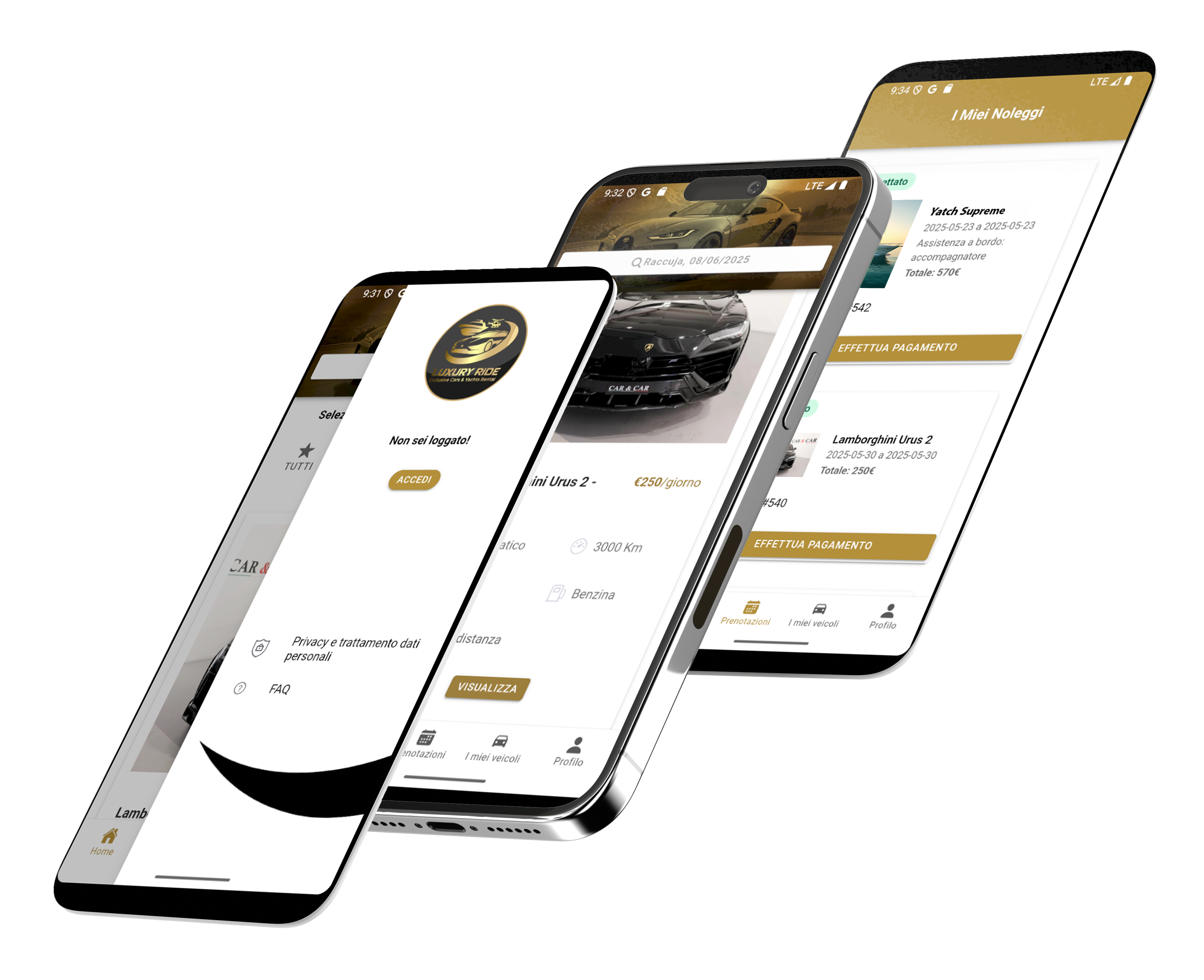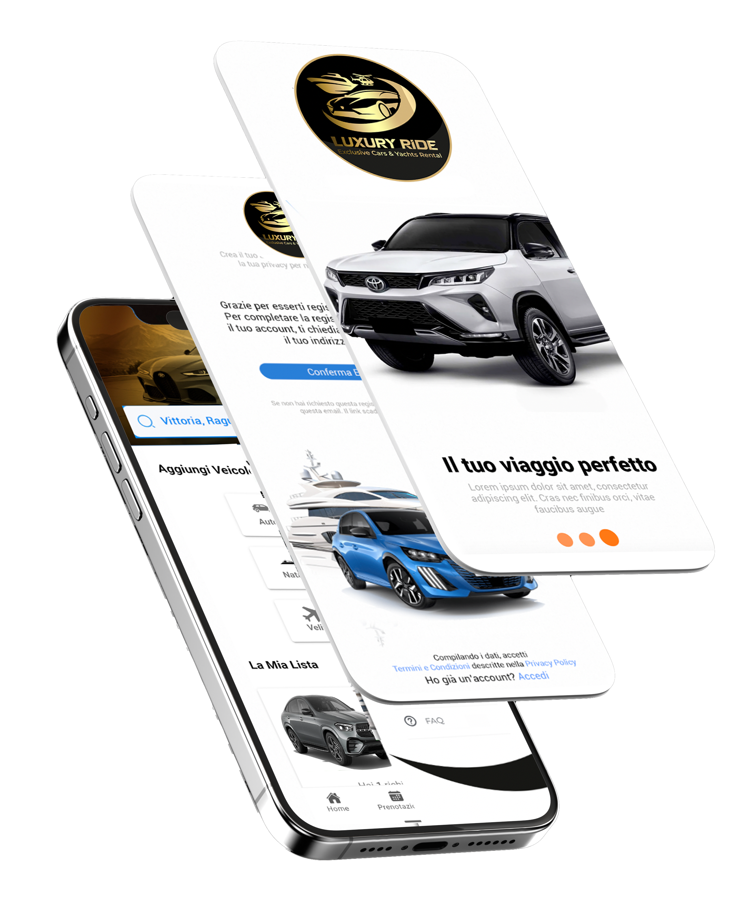 Luxuryride è l’App che consente ai proprietari di auto, barche e velivoli di lusso la prenotazione selettiva, sicura e immediata del proprio mezzo, e ai privati: un noleggio conveniente, veloce e personalizzato per le proprie esigenze di luxury experiences.